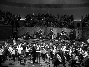 再一點(diǎn)是藝術(shù)上的。如果只是搖滾伴交響或者交響伴搖滾,這樣的形式不夠刺激,很多人就會(huì)選擇只聽(tīng)搖滾或者交響。但是這種形式,音樂(lè)內(nèi)容上是對(duì)比的,互動(dòng)的,有時(shí)候你們會(huì)聽(tīng)到搖滾和巴洛克的對(duì)話,搖滾和瓦格納的對(duì)話,搖滾和巴赫的對(duì)話,這次我們有一首特別的歌《上海半導(dǎo)體》,是懷舊和未來(lái)的對(duì)話。