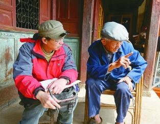 范穩(wěn)在采訪抗戰(zhàn)老兵。資料照片