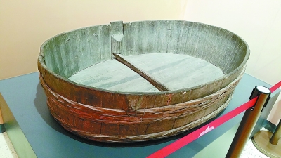 在“奪取全國(guó)解放戰(zhàn)爭(zhēng)勝利”展區(qū),一只看似普通的大木盆也有著一番傳奇經(jīng)歷。這只長(zhǎng)1.7米,寬1.15米,高0.38米的大木盆,是華東野戰(zhàn)軍著名偵察英雄齊進(jìn)虎等在渡江戰(zhàn)役前夕到黑沙洲偵察敵情時(shí)用過的渡江工具。
