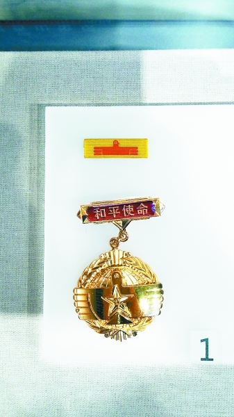 進(jìn)入展覽尾聲,“在強(qiáng)軍興軍新征程上闊步前行”展區(qū)里,可以看到申亮亮的聯(lián)合國(guó)維和勛章、中國(guó)人民解放軍和平使命紀(jì)念章等多枚勛章。