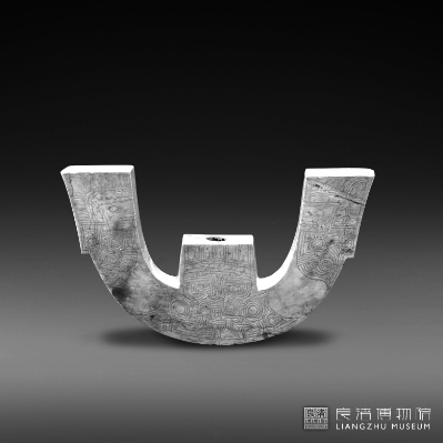良渚遺址出土的玉質(zhì)三叉形器,出土?xí)r位于墓主人頭部,應(yīng)屬冠帽上的飾物。 (圖片來(lái)源于良渚博物院)