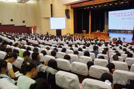李敬澤:“文學(xué)照亮生活”這個主題確實是一份珍貴的初心和美好的愿望。有時,我們談到文學(xué)、文化,總是先想到北上廣這樣的大城市和文化中心,但是我們常常忘了在中國廣袤的土地上,每個地方都有自己豐富的文化,像慶陽這個地方就有它獨特的文化元素,也有廣大的文學(xué)愛好者和創(chuàng)作者。我們希望通過“大講堂”這樣的形式,讓作家能夠真正地走到廣大讀者和朋友中去,能夠和他們面對面有一個對話和交流的機會。這既是作協(xié)的責(zé)任,同時也是每一個文化人,每一個作家、學(xué)者應(yīng)該做的事。把我們對文學(xué)的理解和思考講出來和大家交流,而在整個過程中,我們也從大家這里得到啟發(fā)和激勵。目前打算一個月至少講一堂,也希望能把這件有意義的事情持續(xù)做下去。