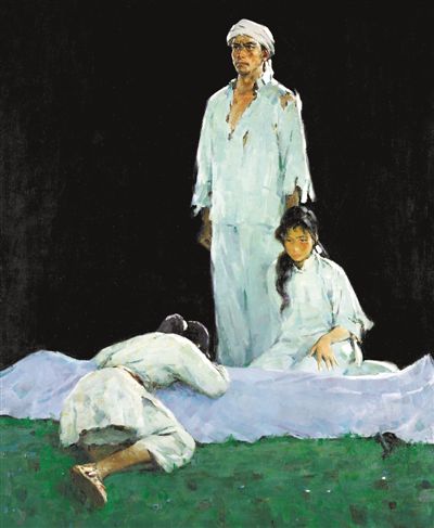 新中國成立之后,對于革命歷史的回顧與再表現(xiàn),因博物館建設和革命傳統(tǒng)教育之需,成為新美術創(chuàng)作的重要主題。各大軍種、軍區(qū)創(chuàng)作室之設置,全軍美展之舉辦,為軍事題材美術創(chuàng)作的發(fā)展提供了平臺,良好的創(chuàng)作環(huán)境使“革命的政治內(nèi)容和盡可能完美的藝術形式的統(tǒng)一”成為可能。外來的雕塑、油畫探索民族化,中國畫致力于表現(xiàn)現(xiàn)代生活的突破,精品力作遂如泉涌出:《人民英雄紀念碑》奏響中國革命史詩的凱歌,其浮雕水平至今難以超越,《艱苦歲月》則宛如這史詩的一個細節(jié),深入到人的內(nèi)心世界刻畫;油畫《紅軍不怕遠征難》強化戰(zhàn)事之艱的冷黑色調,《夜渡黃河》動人心魄的情境筆勢,《毛澤東在井岡山上》的中國寫意畫風,《狼牙山五壯士》《決戰(zhàn)前夕》不重敘事而專注精神的表現(xiàn),均成就那個時代的藝術高度;中國畫畫家以新筆墨與新思維實現(xiàn)了重大題材人物畫的突破,《八女投江》以情節(jié)性造型取勝,《轉戰(zhàn)陜北》為側面表現(xiàn)以少勝多之寫意典范,《把學習成績告訴志愿軍叔叔》則以其生活化親切動人……這是輝煌的一頁,英雄主義的主題唱響那個時代,一批力作經(jīng)受了時代考驗被稱為“紅色經(jīng)典”。一些作品創(chuàng)作過程的反復和波折,為后人留下了如何處理歷史真實和藝術真實,如何直面戰(zhàn)爭或者側面表現(xiàn),如何遵循藝術規(guī)律提高藝術格調的經(jīng)驗。