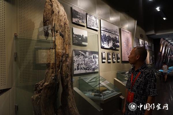 9日上午,采訪團來到遼沈戰(zhàn)役紀念館,紀念館由朱德元帥親筆題寫?zhàn)^名。從戰(zhàn)史館、支前館、英烈館到全景畫館,一張張黑白照片、一件件歷史文物將每個人拉回到那段艱難的革命歷史歲月。紀念館中,一個被保存著的枯樹引起了大家的注意。這棵樹曾為戰(zhàn)士擋住許多槍炮,被命名為“英雄樹”。英雄樹的表面仍殘留著許多槍眼和彈孔,團員們站在英雄樹前,心情久久不能平靜。團員陳亮感慨地說:“這棵樹曾被槍炮打過,雖有些干枯,卻始終沒有腐朽,它讓我們敬畏?!焙髞?,陳亮還為英雄樹作了一首詩。他說,看到實物實景,內(nèi)心常常受到觸動,創(chuàng)作的靈感也會瞬間迸發(fā)。寫作就是為了不遺忘。團員裔兆宏有同樣的感受,他說,參觀革命根據(jù)地現(xiàn)場遺址,對于摒棄歷史虛無主義,真實再現(xiàn)革命歷史,創(chuàng)作出有歷史感、有情懷、有溫度的作品具有重要的意義。