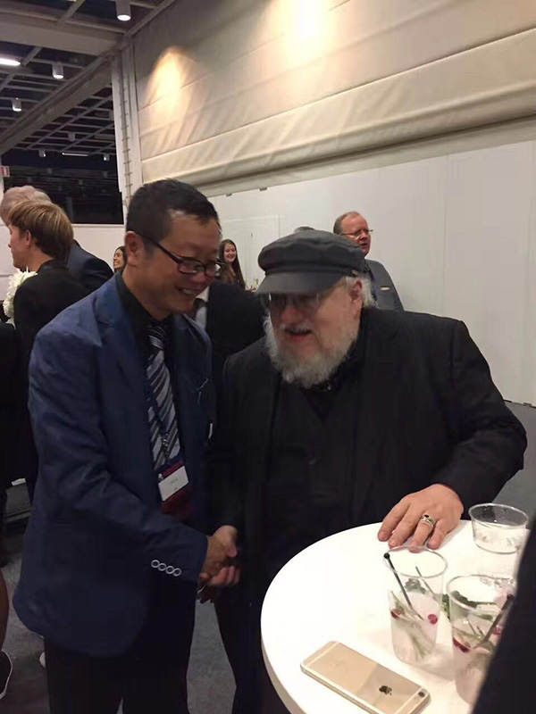 “挖坑專家”喬治 R.R 馬丁此次來(lái)世界科幻大會(huì)是來(lái)頒發(fā)一個(gè)系列獎(jiǎng),姬少亭笑道:“他自己的系列都還沒(méi)寫完,大家都在問(wèn)他快寫完了沒(méi)。大家還拍下了大劉與馬丁的握手合照,調(diào)侃這是兩個(gè)毀滅宇宙的人在對(duì)話。”