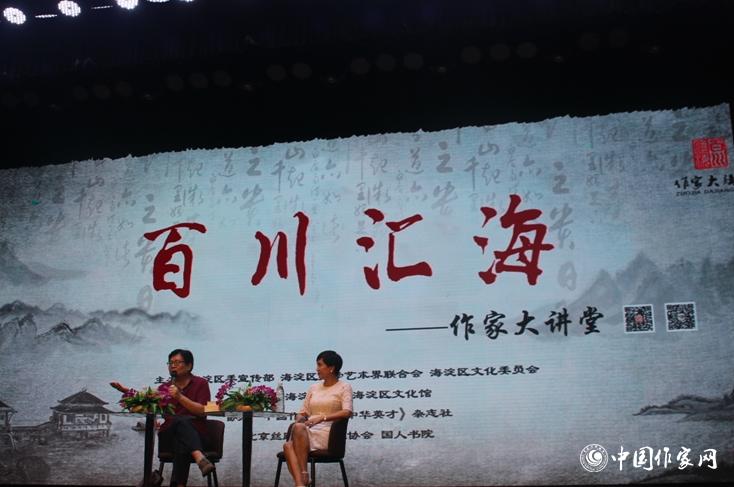 “百川匯海?作家大講堂”系列公益講座由北京海淀區(qū)委宣傳部、海淀區(qū)文聯(lián)、海淀區(qū)文化委主辦,海淀區(qū)作協(xié)、海淀區(qū)文化館承辦,中國作家網(wǎng)、《中華英才》雜志社、北京絲路文化發(fā)展協(xié)會、國人書院協(xié)辦。北京大學中文系主任陳曉明、首都師范大學教授張志忠、海淀區(qū)作協(xié)主席石鐘山擔任文學顧問,中央電視臺新聞主播崔志剛擔任藝術(shù)顧問。講座旨在邀請活躍在當代文壇上的著名作家、文藝理論家、港臺作家以“師說”的名義走上講臺,每月一講,通過創(chuàng)新講座的內(nèi)容與形式,不斷給廣大文學愛好者以全新的視聽效果,強調(diào)“師者”與受眾者的互動,助力實現(xiàn)廣大文學愛好者的文學夢想。