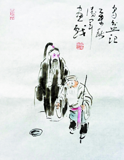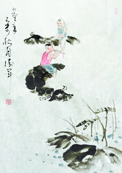1993年,我在??诤屯粝壬献鬟^一幅畫。我畫了兩頭水牛,他添補了雨景,并題款:“潘軍畫牛,曾祺補雨”。如今,汪先生走了二十年,昔日作畫的情形猶如目下,每每回想總很傷感。曾有掮客來打聽這幅畫,讓我出價,我說沒價,那人就說:我開價如何?我回答:不賣。不過幾年前網(wǎng)上就有人在冒名賣我的字,潤格還不低。朋友說,告吧。我一笑付之,人家無非就是混口飯吃,何必較真。當(dāng)初不也有盜版我的書嗎?我對書畫界最大的厭惡,是某些人習(xí)慣以大師、巨匠自居,炒作身價,僅此一點就比文學(xué)圈皮厚。當(dāng)然我也不會加入任何隊伍,一意孤行是我喜歡的生活方式。