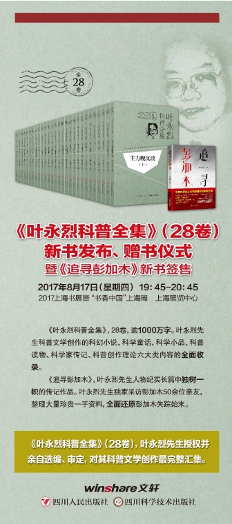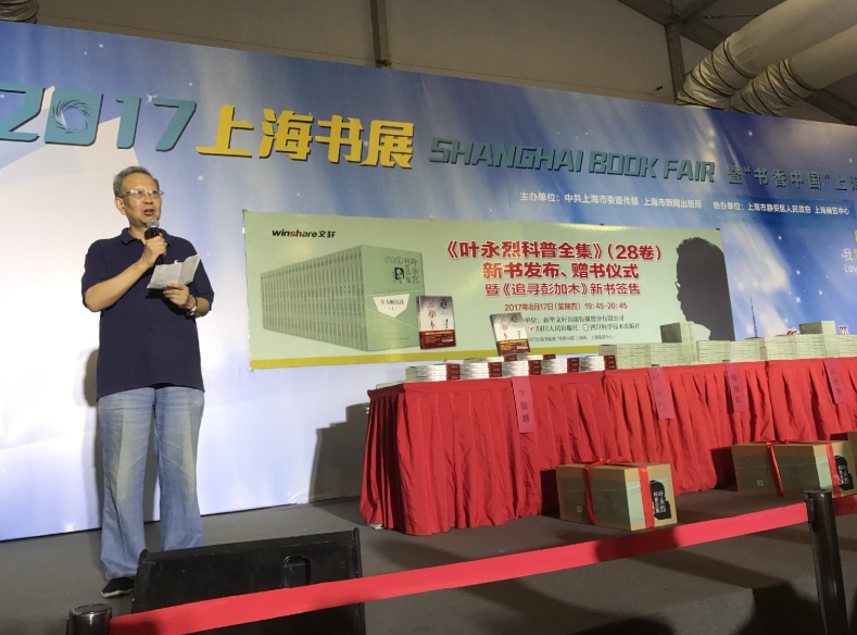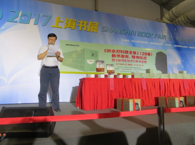 2017年上海書展《葉永烈科普全集》(28卷)新書發(fā)布、贈書儀式暨《追尋彭加木》新書簽售活動今天在這里隆重舉行,我謹(jǐn)代表上海市科普作家協(xié)會對這個活動的成功舉辦表達(dá)祝賀,并向葉永烈先生表達(dá)由衷的敬意。
