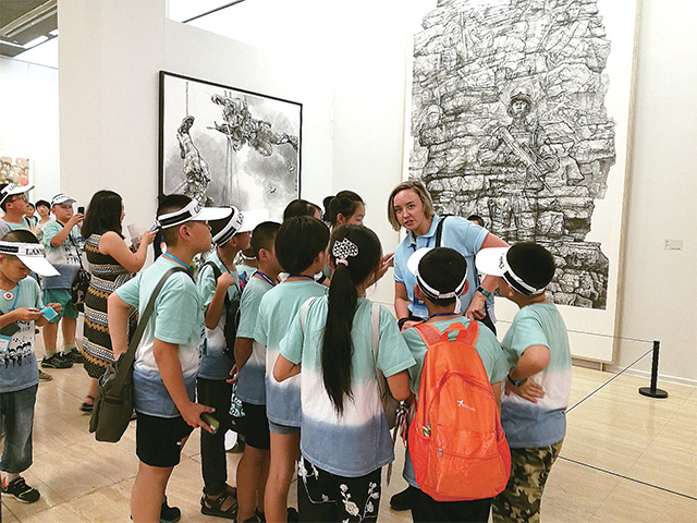 熙熙攘攘的觀展人流中,不同膚色不同年齡的外國(guó)友人無(wú)疑是一道亮麗的風(fēng)景,馬克西姆是北京外國(guó)語(yǔ)大學(xué)的一位留學(xué)生,他字正腔圓地說(shuō):“超贊!”露絲是個(gè)性格開(kāi)朗的法國(guó)女孩,一進(jìn)展廳,就興奮地掏出隨身攜帶的寫(xiě)生本坐在地上臨摹,她說(shuō):“這些畫(huà)很震撼,中國(guó)的文化很博大?!?/p>