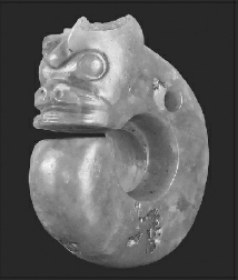 另一類為玉豬龍,正式發(fā)掘出土的有4件,分別出自牛河梁遺址和半拉山遺址的積石冢石棺墓內(nèi)。其中,牛河梁遺址第二地點一號積石冢4號墓內(nèi)出土2件,牛河梁遺址第十六地點14號墓內(nèi)出土l件;半拉山遺址12號墓內(nèi)出土1件。另外,敖漢旗博物館收藏有3件、巴林右旗博物館收藏有2件、巴林左旗博物館收藏有1件,均有明確出土地點。遼寧省博物館、旅順博物館、天津博物館、首都博物館、故宮博物院等收藏有10余件紅山文化玉豬龍,出土地點不詳。此外,英國大英博物館收藏有2件,其中l(wèi)件器體身部殘缺;法國吉美博物館收藏有1件。