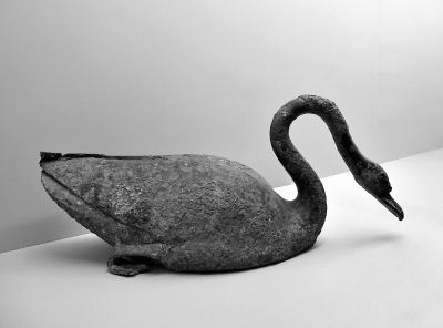 2000年,又一處“前所未見”的陪葬坑K0007被發(fā)現(xiàn),這里出土的不是陶俑,而是青銅水禽——20只雁、20只天鵝、6只仙鶴,它們非常規(guī)律地分布在水池兩邊的臺地上,有的水中覓食,有的伏臥小憩,有的曲頸汲水,栩栩如生,姿態(tài)各異。另外還出土了造型奇異的陶俑15件。