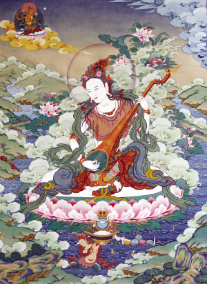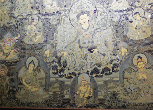 唐卡藝術(shù)是藏族特色藝術(shù)之一,其繪制程序復(fù)雜,包括制作畫布、構(gòu)圖起稿、著色染色、勾線定型、鋪金描銀、開眼、縫裱等一整套工藝程序。它不僅體現(xiàn)了藏族的繪畫技法,也呈現(xiàn)了其他民族繪畫藝術(shù)的特點(diǎn),是多民族文化交流借鑒的繪畫藝術(shù)成果。