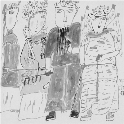4 您的漫畫多而雜,人物造型夸張,看起來簡單,又模仿不出來,幾十年一貫保持著荒誕天真的妙趣。《景陽岡武松打虎》《紅樓夢人物》《韓信月下追蕭何》等等,這些小說和歷史上的人物都經(jīng)過您筆下演繹,呈現(xiàn)出令人忍俊不禁的別樣神采,這是怎么得來的?