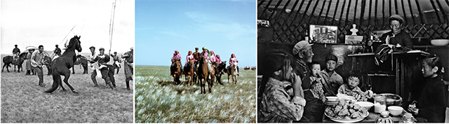 左:馴馬(1978年)、中:初征賽場(1973年)、右:蒙古包托兒所(1969年)