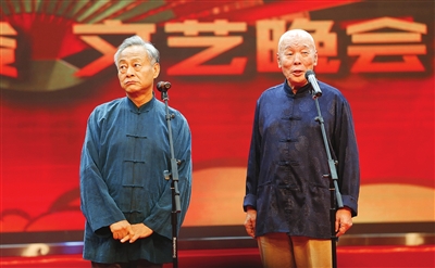 在“馬季杯”全國大學(xué)生相聲展演的頒獎晚會上,王謙祥、李增瑞這對合作了57年“黃金組合”,再度表演了他們的經(jīng)典作品《笑的探討》。