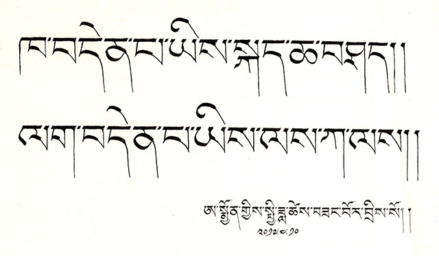 阿寧·扎西東主(藏族)藏文書法,意為:說實(shí)話,做實(shí)事。