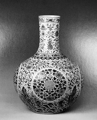 清雍正斗彩海水團(tuán)花天球瓶 資料圖片