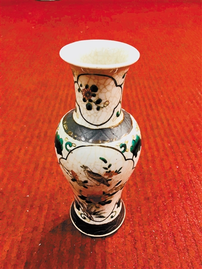 “海外回流”藏品近幾年漸成氣候,深圳也不例外。市民朱小姐帶來了一件從英國買回來的瓷器——清光緒“鐵箍泥五彩開光花鳥紋觀音瓶”;藏友王先生也拿來了兩件從美國帶回來的“寶貝”——清晚期“廣彩蓋盒”和“廣彩碗盞”。