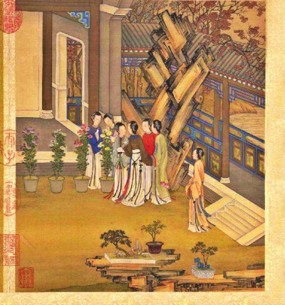 明代,在《陶庵夢憶》中記載有:“兗州紹紳家風氣襲王府。賞菊之日,其桌、其炕、其燈、其爐、其盤、其盒、其盆盎、其看器、其杯盤大觥、其壺、其幃、其褥、其酒、其面食、其衣服花樣,無不菊者,夜燒燭照之,蒸蒸烘染,較日色更浮出數(shù)層。席散,撤葦簾以受繁露。”