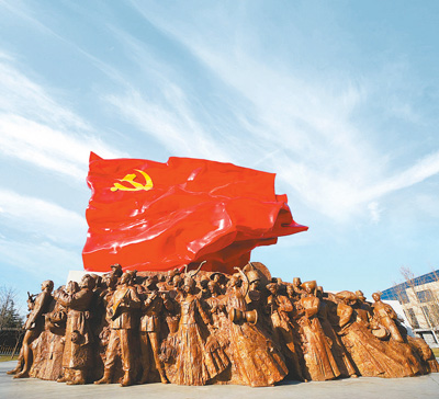 坐落于中央黨校,由魯迅美術(shù)學(xué)院師生集體創(chuàng)作的雕塑《旗幟》