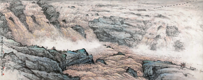 關(guān)山月輾轉(zhuǎn)于四川、貴州、云南、甘肅、青海等地寫生、辦抗戰(zhàn)畫展。艱苦歲月的磨練,不僅使他的繪畫藝術(shù)有了豐厚的積淀,更讓他對高劍父所倡導(dǎo)的“新國畫”的核心理念有了非常深切的領(lǐng)悟,對藝術(shù)的社會價值和藝術(shù)家所肩負的社會責(zé)任,逐漸由認同變成了自覺,成為了他藝術(shù)生命的源動力。他曾在《關(guān)山月紀(jì)游畫》中寫到:“不動我便沒有畫。/不受大地的刺激我便沒有畫。/天氣變異的刺激更富于誘惑,異域的人物風(fēng)土的刺激使畫稿不致離開人間。這些刺激,就是我的‘畫因’ 。 ”