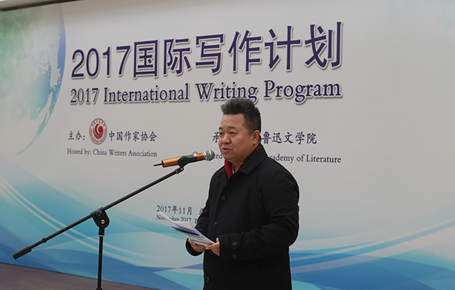 吉狄馬加介紹了2017國際寫作計(jì)劃及魯迅文學(xué)院概況。他說,今天,我們生活在一個(gè)和而不同的世界,“人類命運(yùn)共同體”的提出更加證明來自不同國家的文化、文學(xué)需要密切的對話和交流。2017國際寫作計(jì)劃是中國作協(xié)今年啟動(dòng)實(shí)施的一項(xiàng)重要國際交流計(jì)劃,是為了在中國走向新時(shí)代的今天更好地促進(jìn)不同國家、民族之間的深度交流。他希望,國際寫作計(jì)劃能為來自不同國度的詩人、小說家、翻譯家、批評家、出版者提供深入了解中國的機(jī)會,同時(shí)也期待國外同行帶給中國不同的思考方式、寫作經(jīng)驗(yàn)和文學(xué)作品,大家共同努力為加強(qiáng)國家間的文學(xué)對話、文化交流提供新的可能。