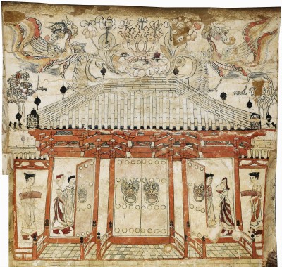 壁畫墓中最引人注目的畫跡,是一座規(guī)模宏大的木結(jié)構(gòu)建筑。在此之前,我國有詳細圖像記載的建筑最早只能追溯到唐代,這幅壁畫詳盡地展示了北朝建筑樣式,可以說是突破性的發(fā)現(xiàn)。