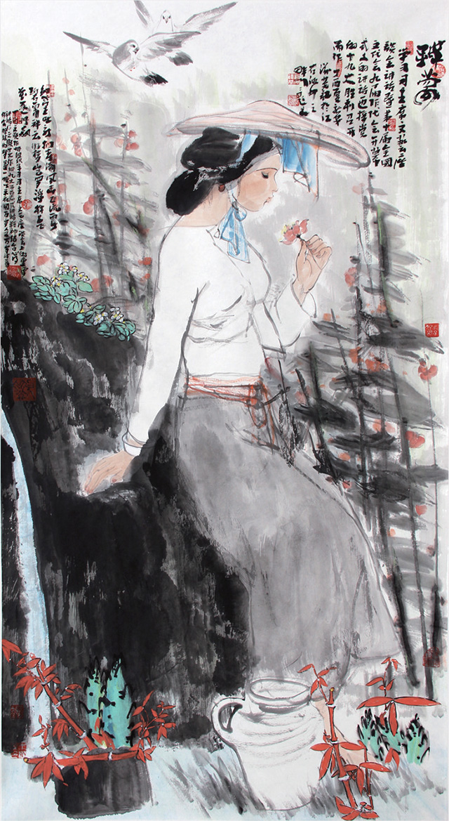 納篁吐新捫春潮,風擊飛流震碧霄。