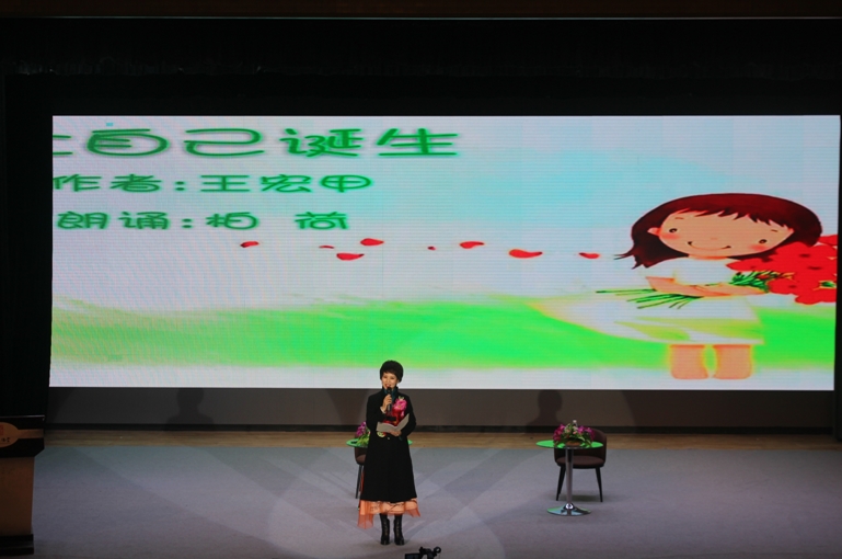 講座現(xiàn)場,柏荷朗誦王宏甲《讓自己誕生》序言節(jié)選