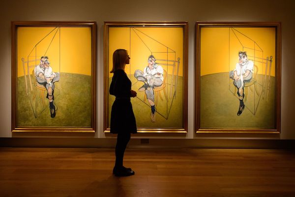 培根在1937年與其他年輕畫家一起在私人畫廊托馬斯·阿格紐父子公司(Thomas Agnew & Son’s)展覽,同展者包括英國著名藝術(shù)家葛瑞漢·蘇哲蘭(Graham Sutherland),后者成為他的友人和導(dǎo)師,也是他將培根介紹給泰特現(xiàn)代藝術(shù)館的館長約翰·羅森斯坦(John Rothenstei),促成日后使得培根名聲大噪的兩次回顧展。1945年,培根在倫敦的利菲弗畫廊(Lefevere Gallery)開辦個人展,展出了成名作《三張習(xí)作》。1962年和1985年,培根兩次在泰特美術(shù)館開辦了個人回顧展。培根去世后,他的作品價格更加飆升。2013年,他的三聯(lián)畫拍出了1.41億美元的天價,一舉超過蒙克的《吶喊》,刷新了藝術(shù)品拍賣的最高紀(jì)錄。