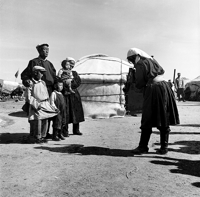 烏蘭牧騎隊員為牧民拍全家福(1973年,東烏珠穆沁旗)