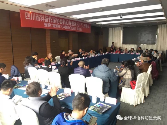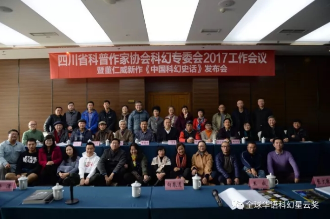 2017年12月9日,四川省科普作家協(xié)會和清華大學出版社共同在成都大成賓館召開董仁威新作《中國百年科幻史話》發(fā)布會。會議由四川省科協(xié)副主席、四川省科普作家協(xié)會理事長吳顯奎和清華大學出版社第八事業(yè)部主任張立紅共同主持,四川省科普作家協(xié)會副理事長陳俊明、楊再華、黃寰,秘書長董晶,副秘書長烏珠熱、任路遙,科幻專委會主任姚海軍,副主任楊楓、張春曉,少兒科普報刊專委會主任張衛(wèi)星,辦公室主任李茂榮,理事會秘書鄭潔,四川大學新聞學院創(chuàng)始人、老院長、博導邱沛篁教授,四川歷史學會會長譚繼和教授,《科幻世界》雜志創(chuàng)始人、原社長楊瀟,《科幻世界》雜志創(chuàng)始人之一、原總編輯譚楷,著名漢學家張昌余教授,著名冰川學者張文敬研究員,著名出版家、四川教育出版社社長雷華,著名出版家、四川科學技術出版社錢丹凝社長,世界華人科普作家協(xié)會秘書長何定鏞、副秘書長李慶雯、方守默、賈英杰,世界華人科幻協(xié)會常務副秘書長阿賢,四川省氣象局副局長馬力,《科幻世界》雜志社副總編輯拉茲,著名科幻作家及理論研究者劉興詩、王曉達、謝云寧、彭柳蓉、王林柏、姜永育、何大江、徐渝江、尹代群、黎嬋,火舌文化董事長唐風、奇影動漫公司董事長付勝、奇影動漫公司合伙人鐘誠、達州科普作家協(xié)會秘書長向胤道,四川省科普作家協(xié)會常務理事王成、李蓉君等四川省科普科幻界人士40余人歡聚一堂,祝賀董仁威《中國百年科幻史話》的出版。