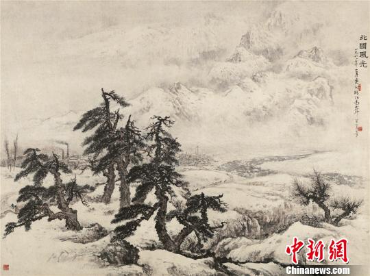 11日,尺幅達到33平尺的關山月巨幅精品《北國風光》亮相廣州,這幅作品被譽為是傅抱石和關山月為人民大會堂迎賓廳合作完成的以《沁園春·雪》詞意為創(chuàng)作背景的《江山如此多嬌》的姊妹篇。