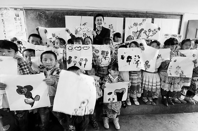 林帝浣為貴州威寧興隆廠小學上書畫課的場景。林帝浣說,如果能在同學們心中埋下一顆藝術和美的種子,或許這里將來能出大藝術家呢。