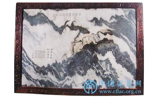 翻開大理石天然畫的歷史,據(jù)記載, 1076年大理國(guó)王貢金裝“碧玕山” ,曾用金鑲制大理石天然畫。唐、宋、元、明、清及民國(guó)時(shí)期都有文人收藏并作題畫詩(shī)。這種“天人合一”藝術(shù),蘊(yùn)畫石、文學(xué)、書法、雕刻藝術(shù)為一體,借畫吟詩(shī),“精神氣,形景韻”相結(jié)合,與中國(guó)傳統(tǒng)寫意畫有同工異曲之妙。