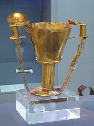出土于邁錫尼的黃金酒杯,現(xiàn)藏于希臘雅典國(guó)家考古博物館