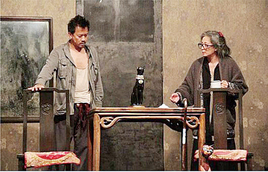 如果說上述作品是獻給為官者的箴言,《家客》《雨夜》《兩只螞蟻在路上》等作品就是唱給普通人的歌。喻榮軍編劇、周小倩導(dǎo)演的《家客》是上海話劇藝術(shù)中心新作,這部著眼于個人家庭生活的三個人的小戲,以風(fēng)趣的形式探討了退休生活、知識分子責(zé)任、人生的可能性等諸多大話題,假想式結(jié)構(gòu)和開放式結(jié)局展現(xiàn)了“佳構(gòu)劇”的精致與精巧。沈陽話劇團新作《雨夜》由李寶群編劇、吳曉江導(dǎo)演,關(guān)注普通人的成長和際遇,人物定位表達了編創(chuàng)者的志趣。李寶群編劇、王根導(dǎo)演的《兩只螞蟻在路上》也以底層視角反映現(xiàn)實冷暖。此外,一些表現(xiàn)歷史人物的作品,如北京人藝重排的《關(guān)漢卿》、上海話劇藝術(shù)中心重排的《商鞅》、河北話劇團的《詹天佑》、北京東城區(qū)政府支持的《留取丹心》等,也在2017年話劇舞臺上留下了印跡。還有一些致敬經(jīng)典的劇目,如李六乙導(dǎo)演的《李爾王》和四川話版《茶館》、方旭改編和導(dǎo)演的《二馬》等,借助經(jīng)典的高度顯示出了獨特魅力。
