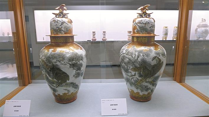 展品中,我注意到有綿野吉二的“金襕手”大瓶和花鳥圖香壺等作品。這個綿野吉二很有商業(yè)頭腦,最初,他在石川縣能美郡寺井町制瓷,明治初期看準(zhǔn)商機,跑到橫濱開了家九谷瓷器專門店,就叫“綿野吉二商店”。他是當(dāng)年將日本九谷燒推向海外市場和海外博覽會的重要推手,而今有故事的“綿野吉二商店”瓷器,已成為收藏界的重要藏品了。