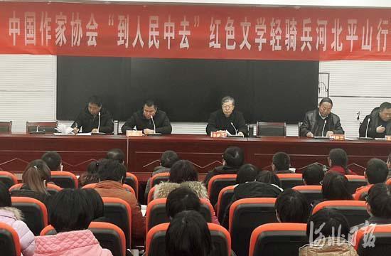 為學習貫徹習近平總書記給內(nèi)蒙古自治區(qū)蘇尼特右旗烏蘭牧騎隊員們回信的重要指示精神,號召廣大文藝工作者努力做新時代“紅色文藝輕騎兵”,今天,由中國作協(xié)主辦,河北省作協(xié)協(xié)辦的“到人民中去”紅色文學輕騎兵河北行活動在平山縣舉辦。