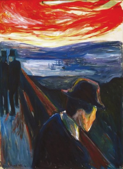 愛德華·蒙克《日落下的黯然:絕望》,紐約大都會(huì)藝術(shù)博物館“愛德華·蒙克:在時(shí)鐘與床之間”特展展品