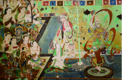 我非常看好做繪本的前景,絲綢之路上從古至今的故事就非常之多。多年前我寫的《敦煌遺夢》,便是一套極好的繪本素材。因為敦煌壁畫本身就融和了古波斯、古印度、日本浮士繪的技法,那造型優(yōu)美的蓮花和飛天藻井,輪狀花蕊的復(fù)蓮,流動的飛云,旋轉(zhuǎn)的散花,飄舞的長巾,艷麗的葡萄、卷草紋,那云氣動蕩、衣袂飄飛的伎樂天……那許多的佛本生、佛傳與經(jīng)變的故事,那無數(shù)的飛天、藥叉、雨師、伎樂、羽人、婆藪仙、帝釋、梵天、菩薩、天龍八部,還有那奇異的鳴沙山、月牙泉、三危佛光……我在書中提到的“吉祥天女沐浴圖”,畫作便來自新疆和田丹丹的石窟——挖掘中國古風(fēng)做繪本,是一條非常寬廣的跨界寫作之路。