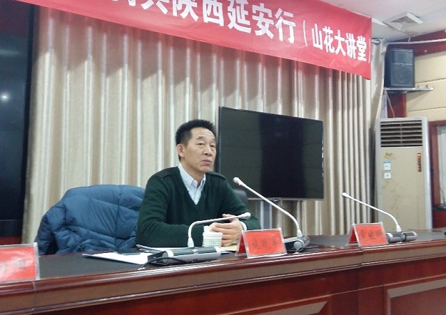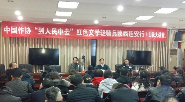 2月2日,中國作協(xié)“到人民中去”紅色文學(xué)輕騎兵陜西延安行活動在延川舉行?!度嗣裎膶W(xué)》主編、中國作協(xié)主席團委員施戰(zhàn)軍作了“偉大傳統(tǒng)與新時代文學(xué)”為主題的文學(xué)講座,并與在場的文學(xué)愛好者進行了互動交流。延川縣委常委、宣傳部長黨曉明,陜西作協(xié)副秘書長、創(chuàng)聯(lián)部主任王曉渭,縣文聯(lián)、作協(xié)及部分文學(xué)愛好者100余人參加活動。講座由陜西省作協(xié)副主席、延安大學(xué)文學(xué)院院長梁向陽主持。