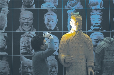 省博物館工作人員正在點交文物秦始皇兵馬俑