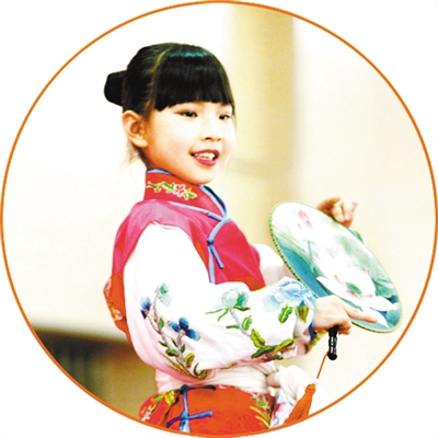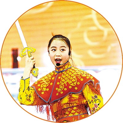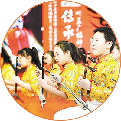 數(shù)十位小學(xué)生的京胡合奏拉開了展示的序幕。這些孩子側(cè)著腦袋,表情凝重,看架勢,如同老琴師的相仿。一抖琴弓子,引來陣陣掌聲。“小家伙,真專業(yè)?!币晃焕蠋煵唤袊@了一句,“這手腕子可夠要勁兒的。”