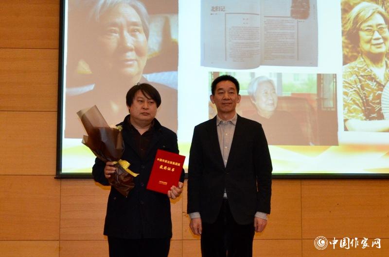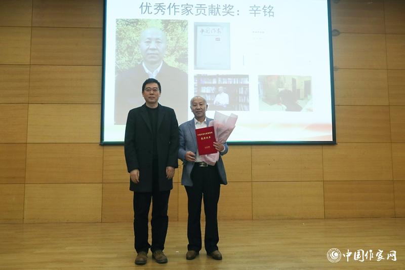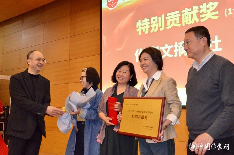 吳義勤為榮獲特別貢獻獎的作家文摘報社頒獎
