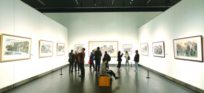 此次展覽為期10天,共展出130幅作品,其中50幅為體現(xiàn)徐州“一城青山半城湖”主題的“大美徐州”系列作品,藝術家用筆墨將壯麗而又秀美、古老而又年輕的徐州展示在人們面前,藝術地再現(xiàn)了黨的十八大以來徐州城市和鄉(xiāng)村的嶄新風貌。(徐 文)