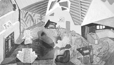 大型室內(nèi),洛杉磯(油畫、紙本、墨水) 大衛(wèi)·霍克尼(英國)