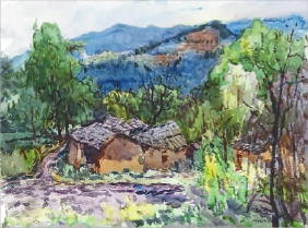 松陽縣楊家堂村(水彩) 駱獻躍