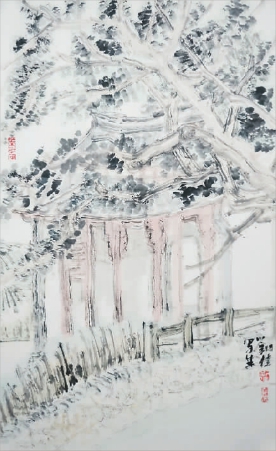 堰頭村口(中國畫) 劉佳