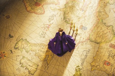 紫色一直被認為是一種彰顯霸氣的顏色,為歐洲皇室和貴族所偏愛。在電影《伊麗莎白:黃金時代》里,伊麗莎白一世的霸業(yè)初成時,站到一幅展開的世界地圖上,她的臉沒有正面出現(xiàn)在畫面上,在俯拍鏡頭下,觀眾看到一襲浮華的紫色綢緞禮服裙,巨大的裙擺覆蓋了女王腳下的大海和大陸。